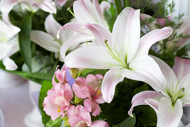 Lilies are the most common flower seen in sympathy arrangements. These have deep connections with Christianity and are a symbol of innocence, which can be comforting to the bereaved. Lilies also mean peace in Asian cultures, and many facing a time of grief can benefit from wishes of peace.