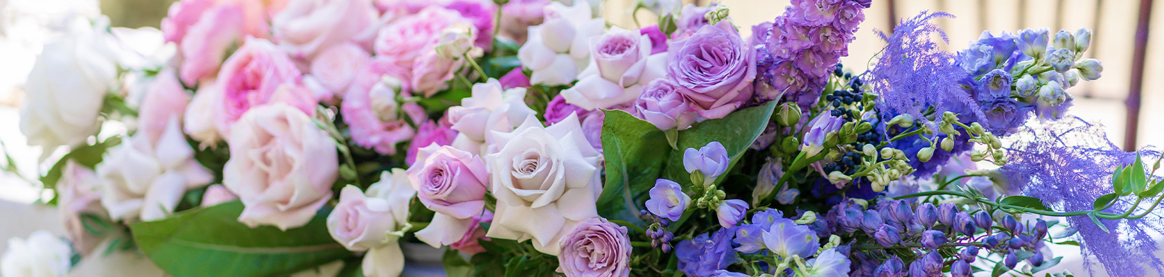 - Lavender, Lilac, & Wisteria — Dreamy purple tones are hallmarks of spring gardens. Inspired by blooming lilac bushes, fragrant lavender fields, and cascading wisteria vines, these hues add a whimsical, romantic quality to arrangements. From pale lilac to deeper violet shades, these colors evoke calm and creativity. Paired with blush pink, fresh greens, or soft whites, lavender tones create an energy that feels light and unmistakably seasonal.